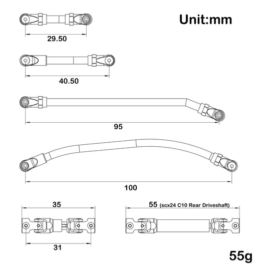 MEUS Racing MD24 chassis specific Links and Driveshafts - MEUS-SCX24-24