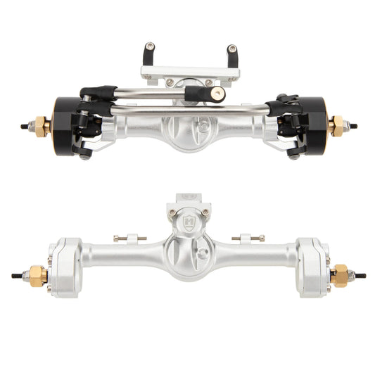 MEUS Racing 'Mullet Setup' SCX24 Metal V2 Isokinetic Front Axle & Portal Rear Axle for Axial 1/24 SCX24 RC Crawler (Silver) - SCX24-01-KY1599