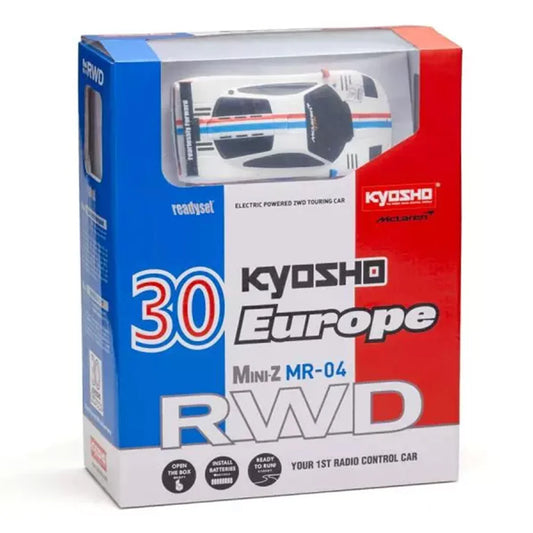 Kyosho MR-04 RWD Mini-Z Readyset w/ McLaren F1 GTR Kyosho Europe 30th Anniversary (White/Red/Blue) w/KT-531P 2.4GHz Radio - 32372KE
