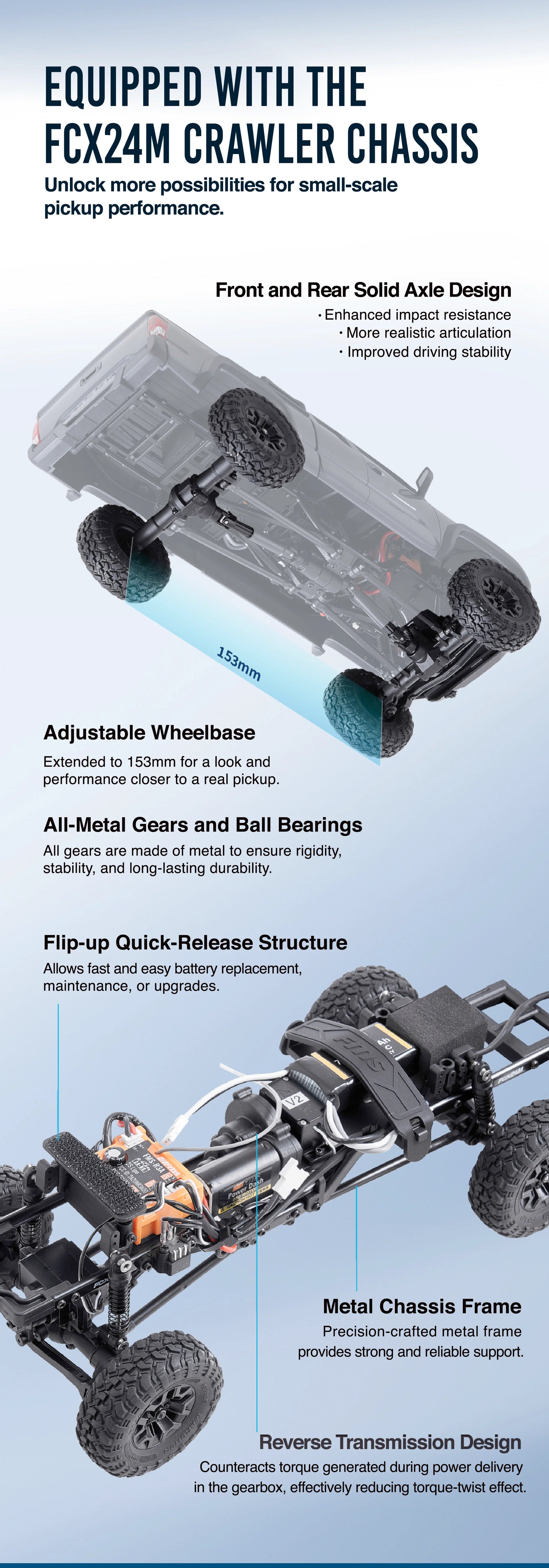 Hard-body ABS construction with scale-accurate detailing. - All-New FCX24M Chassis