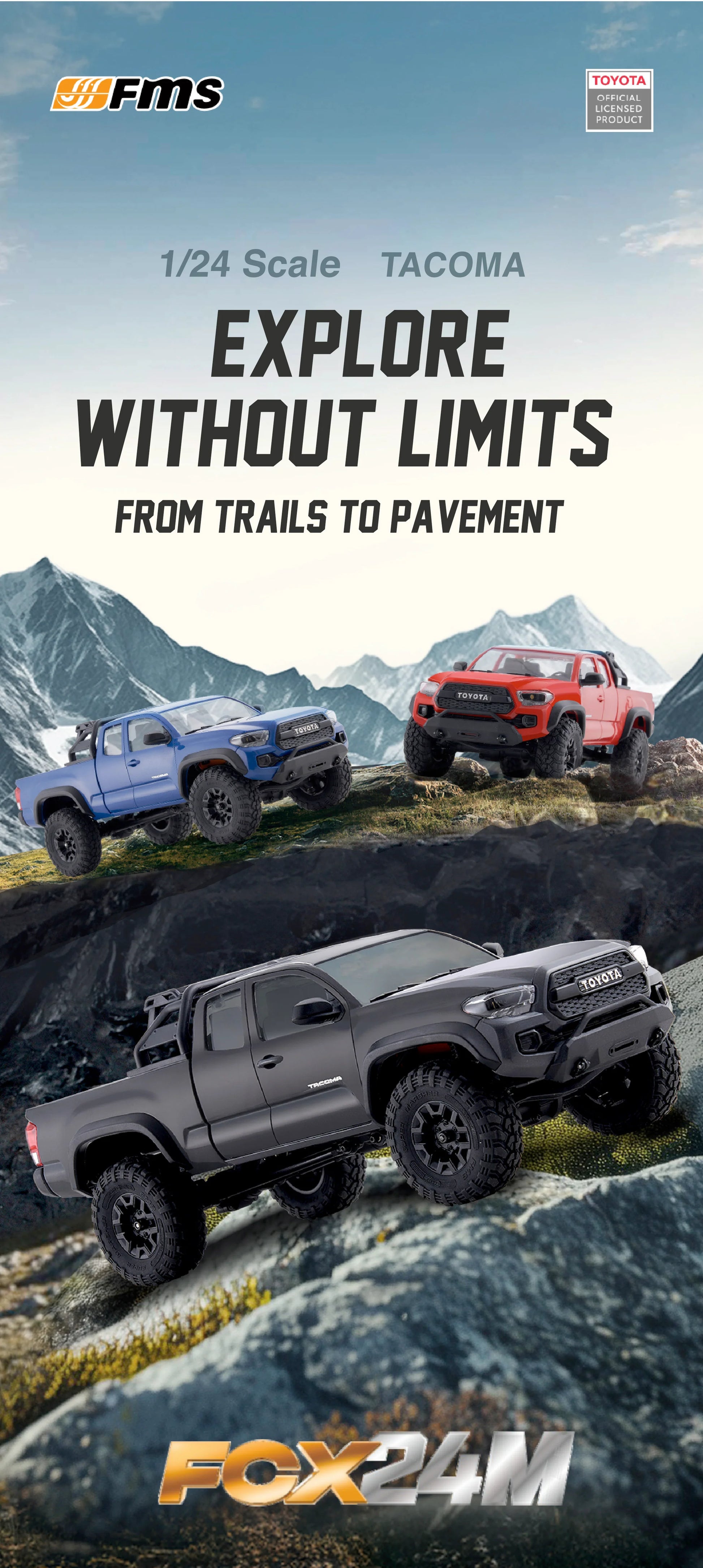Whether you’re building micro-terrain indoors or taking on backyard trails, the FMS Tacoma is ready for whatever comes next. It’s not just a model—it’s an RC tribute to one of the most dependable off-road trucks ever built.
