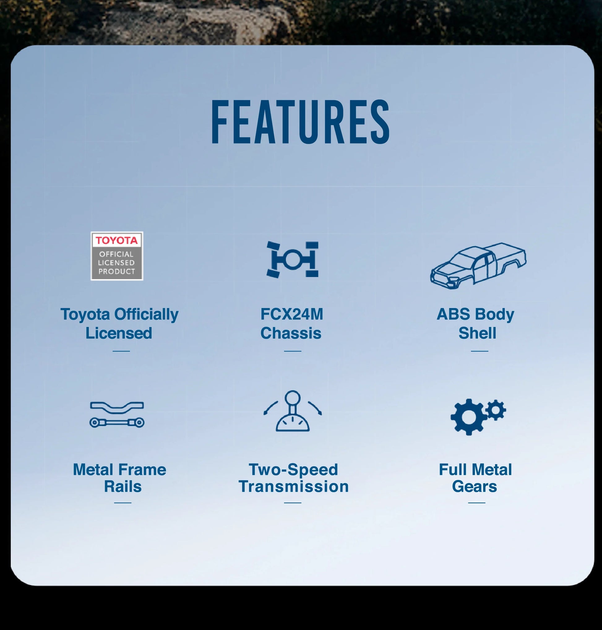 - 1 × 1:24 FCX24M Toyota Tacoma RTR (with installed electronics)