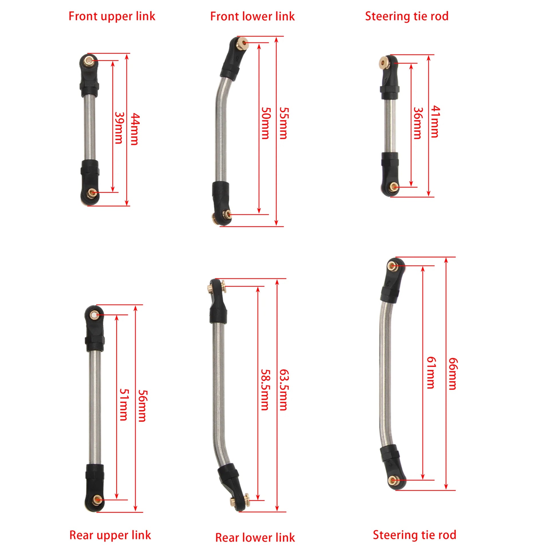 Meus Racing Stainless Steel High Clearance Chassis Links Steering Links Set 10pcs 132mm Wheelbase for 1/24 Rock Crawlers like SCX24 Basecamp | C10 | JLU | Bronco | 4Runner